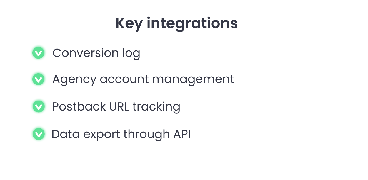- Conversion log — easily access all the data about your conversions to find discrepancies and analyze your performance more deeply.